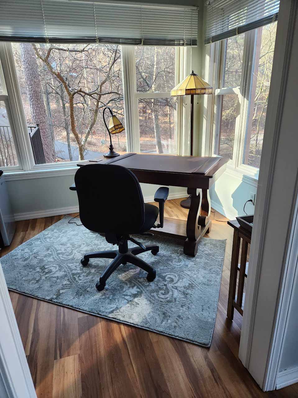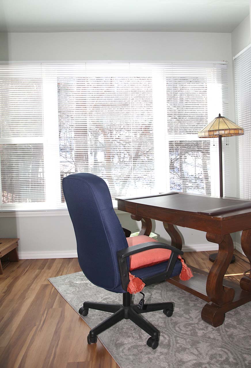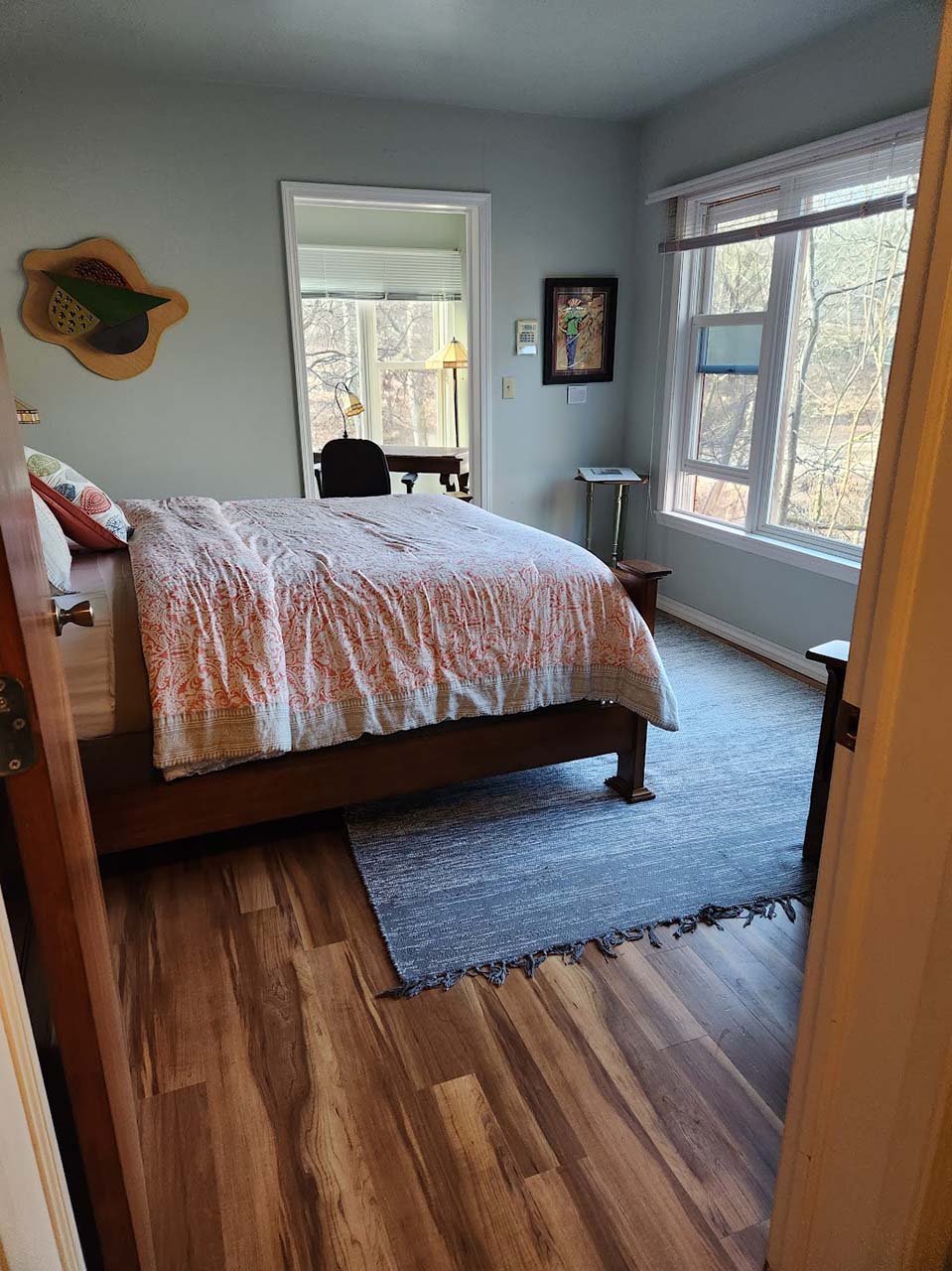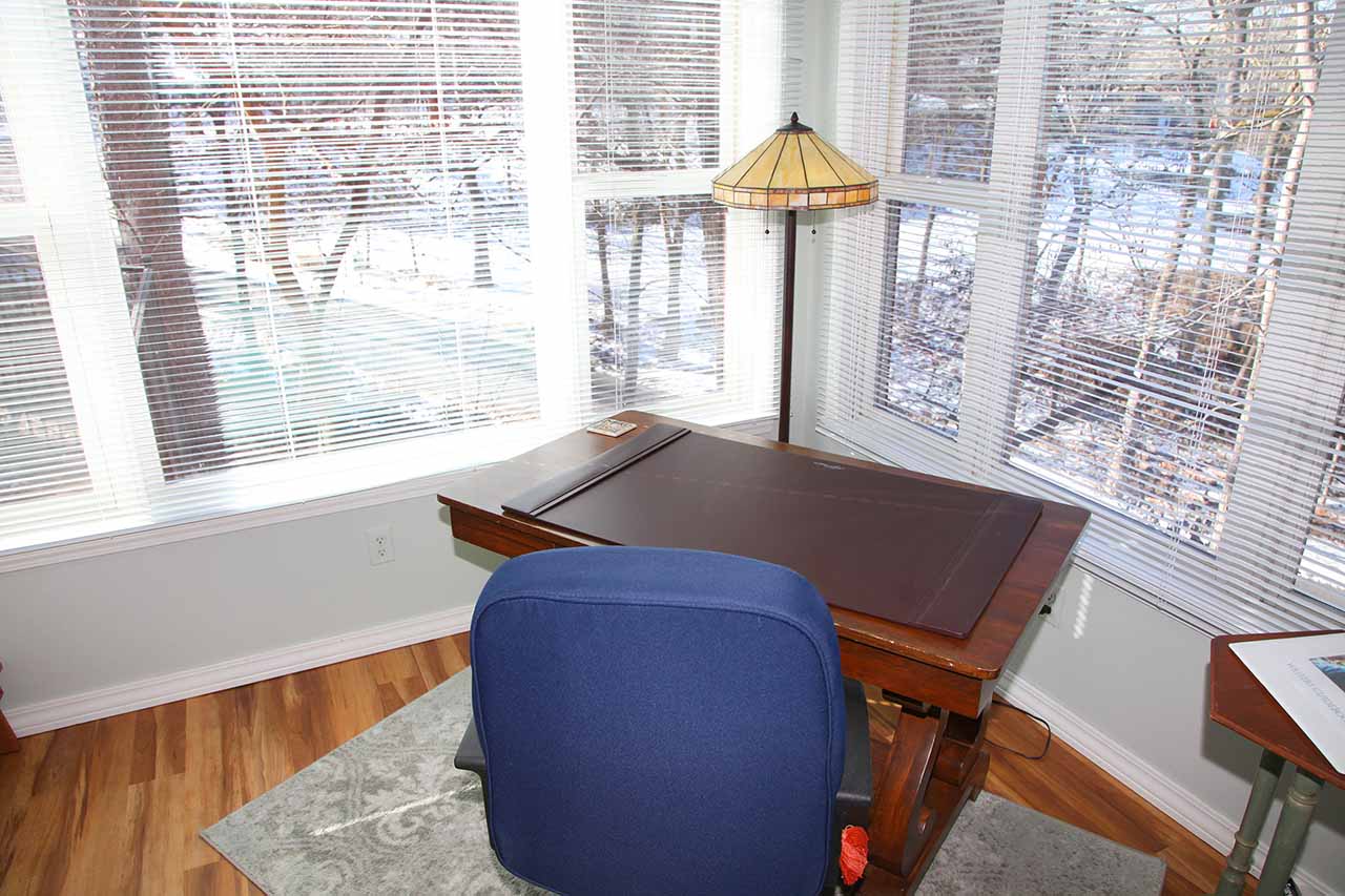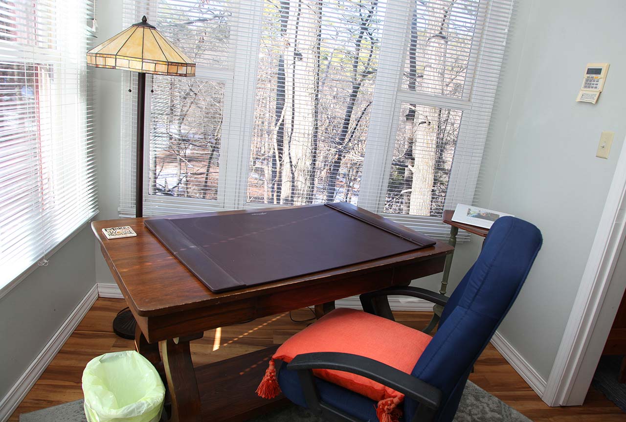 The writing suite entry is through the bedroom. With many windows, the writing desk, mini fridge, coffee pot and the beautiful landscape to be in the middle of.